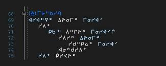 imgThe nehiyaw syllabics for the programming act of smudging in acimow/CREE#, a programming language created by the author.